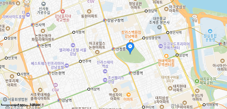 - 대중교통 : 2호선, 분당선 선릉역10번출구(도보 7분) / 9호선 분당선 선정력 3번출구(도보16분)